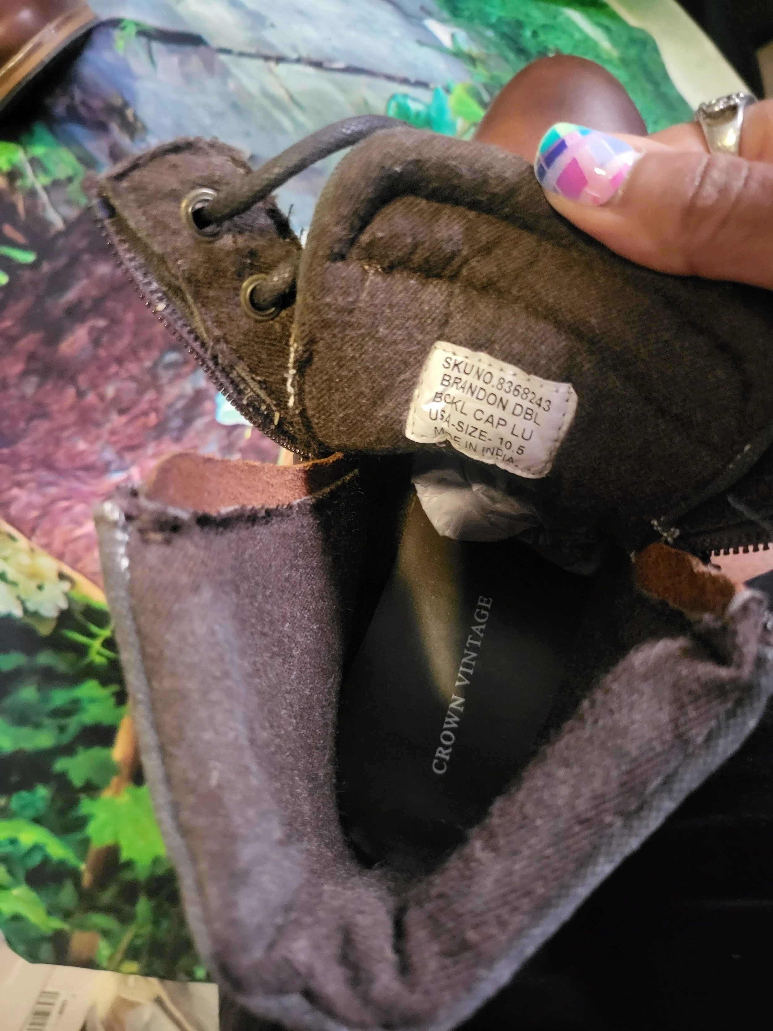 Our Inventory › Mens Crown Vintage Brown Boots- Size 10.5 Mens Crown Vintage Brown Boots- Size 10.5 $25.00 Add To Cart Added! You Might Also Like Quick View Brand New Womens Cushioned Grey Sandals- Size 10 $6.00 Quick View Women's Casual Blue Jeans Loafers- Size 11 $6.00 Quick View Jessica Rich x Steve Madden Adrienne Wedge Sandal- Size 9.5 $35.00 Quick View Womens Suede Heeled Ankle Boots- Size 7.5 $6.00 Quick View Women's Slip On Casual Shoes- Size 11 (44) $5.00